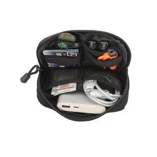 Gracias a sus dos correas verticales y broches de metal en la parte posterior, puedes acoplar este bolso modular a un sistema MOLLE: ya sea en una mochila, un chaleco táctico, un cinturón o cualquier otro equipo compatible. También puedes usarlo de forma independiente como una riñonera o bolso de mano para llevar lo esencial.